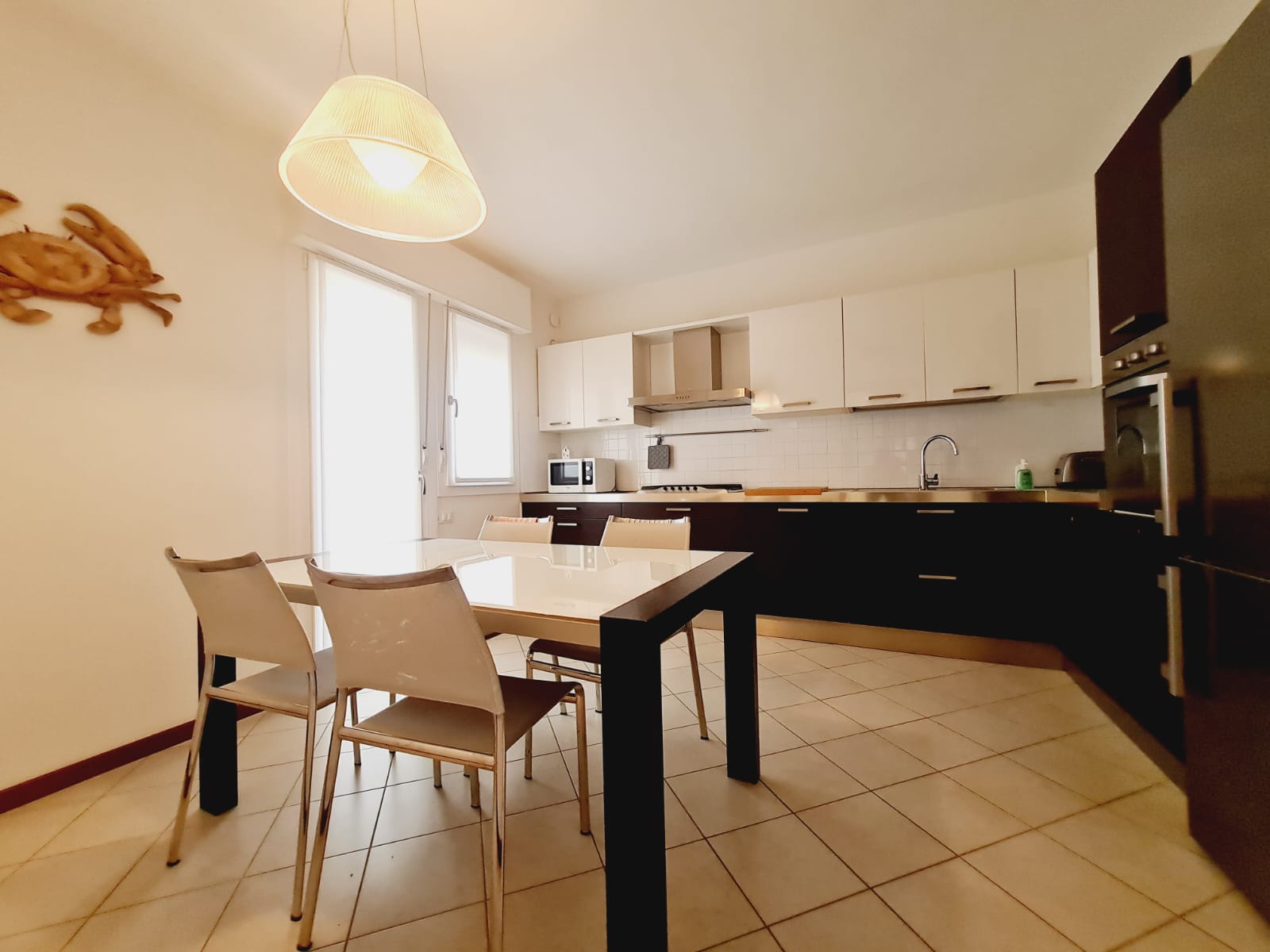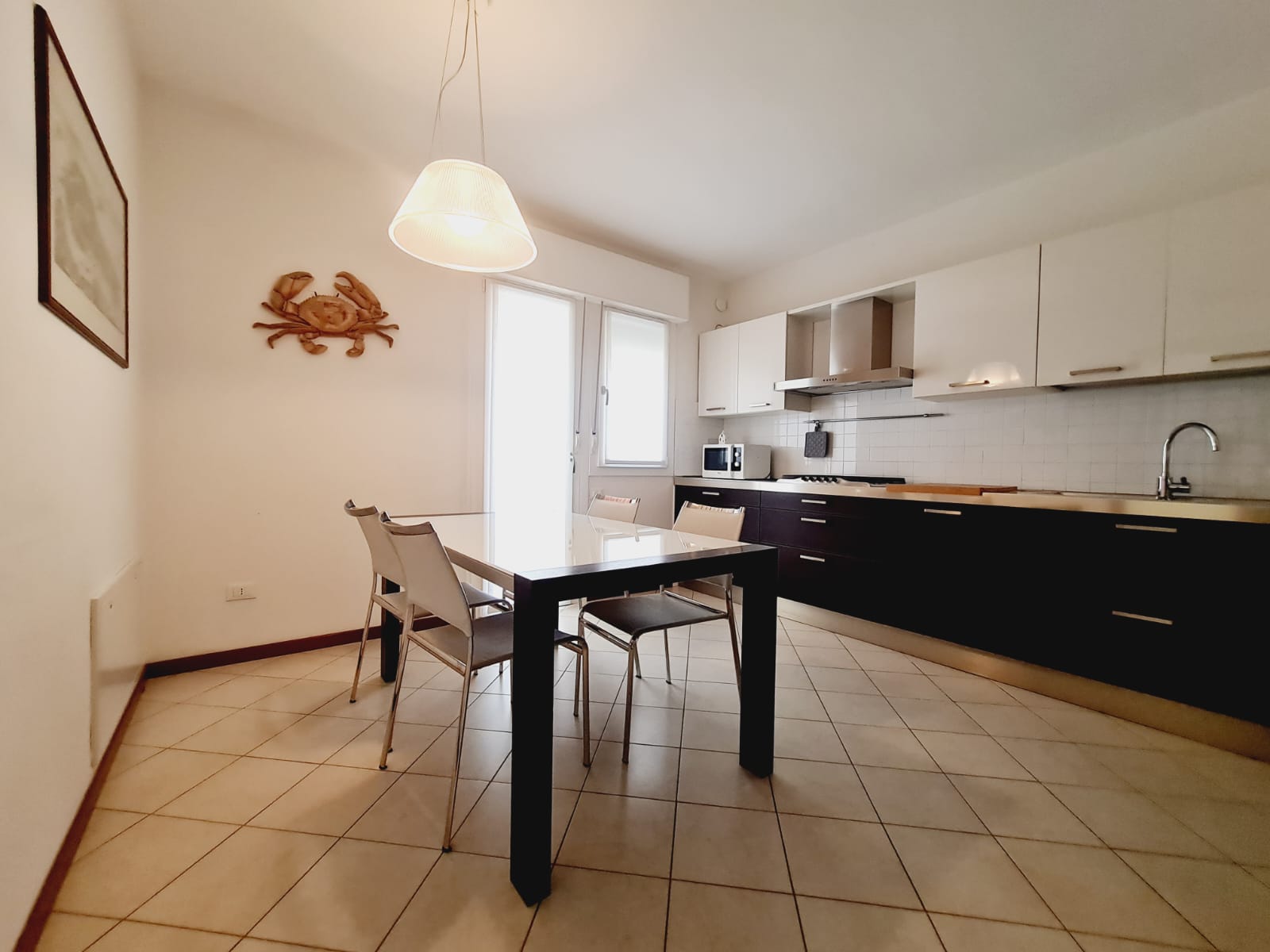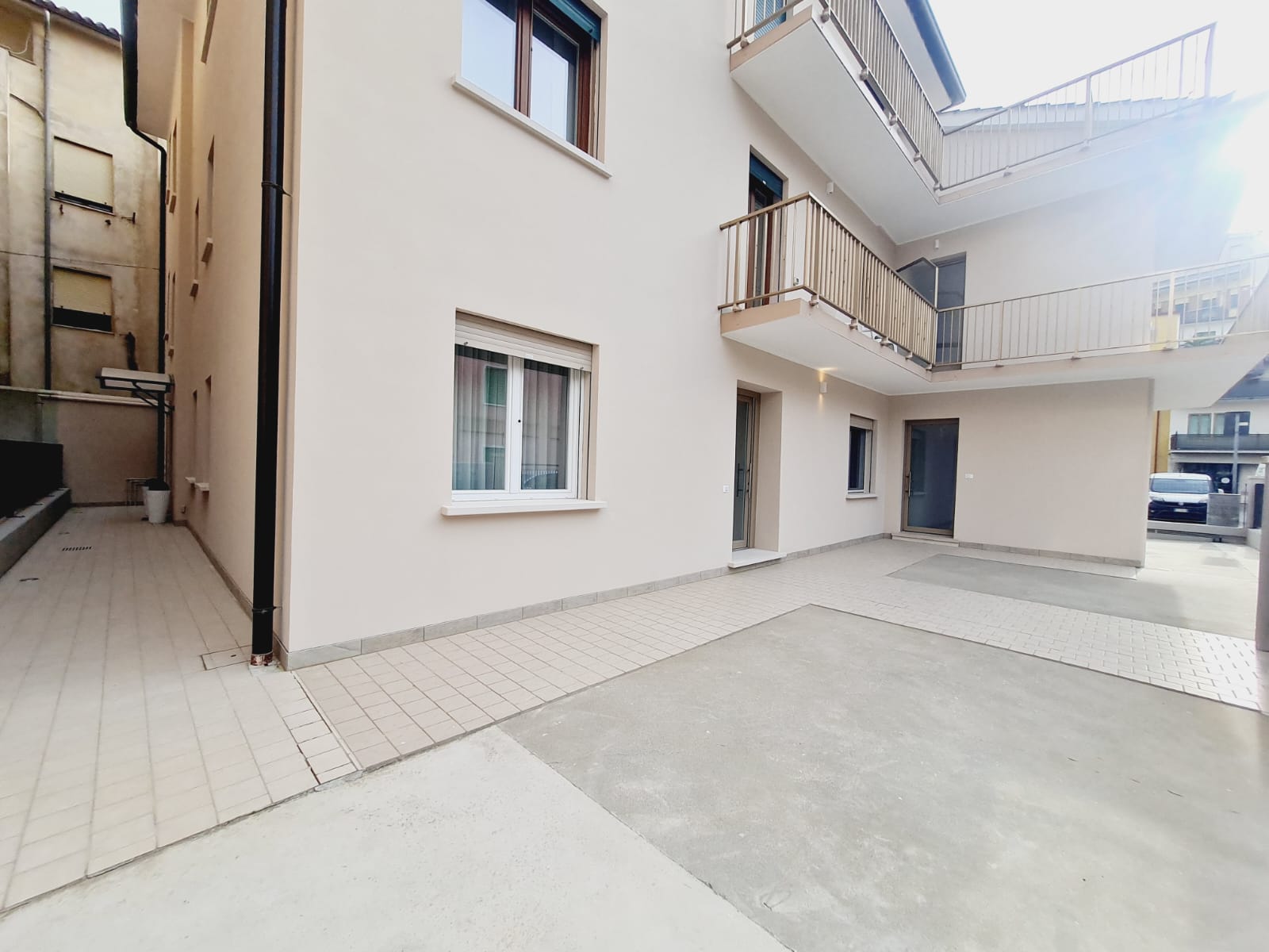 Im Zentrum von Caorle, nur 150 Meter vom Strand Levante entfernt, in einer praktischen Lage mit Einkaufsmöglichkeiten, befindet sich diese geräumige Eckwohnung im Erdgeschoss (Nr. 2) mit separatem Eingang. Sie umfasst: