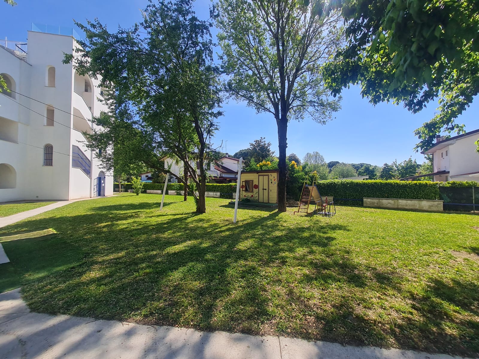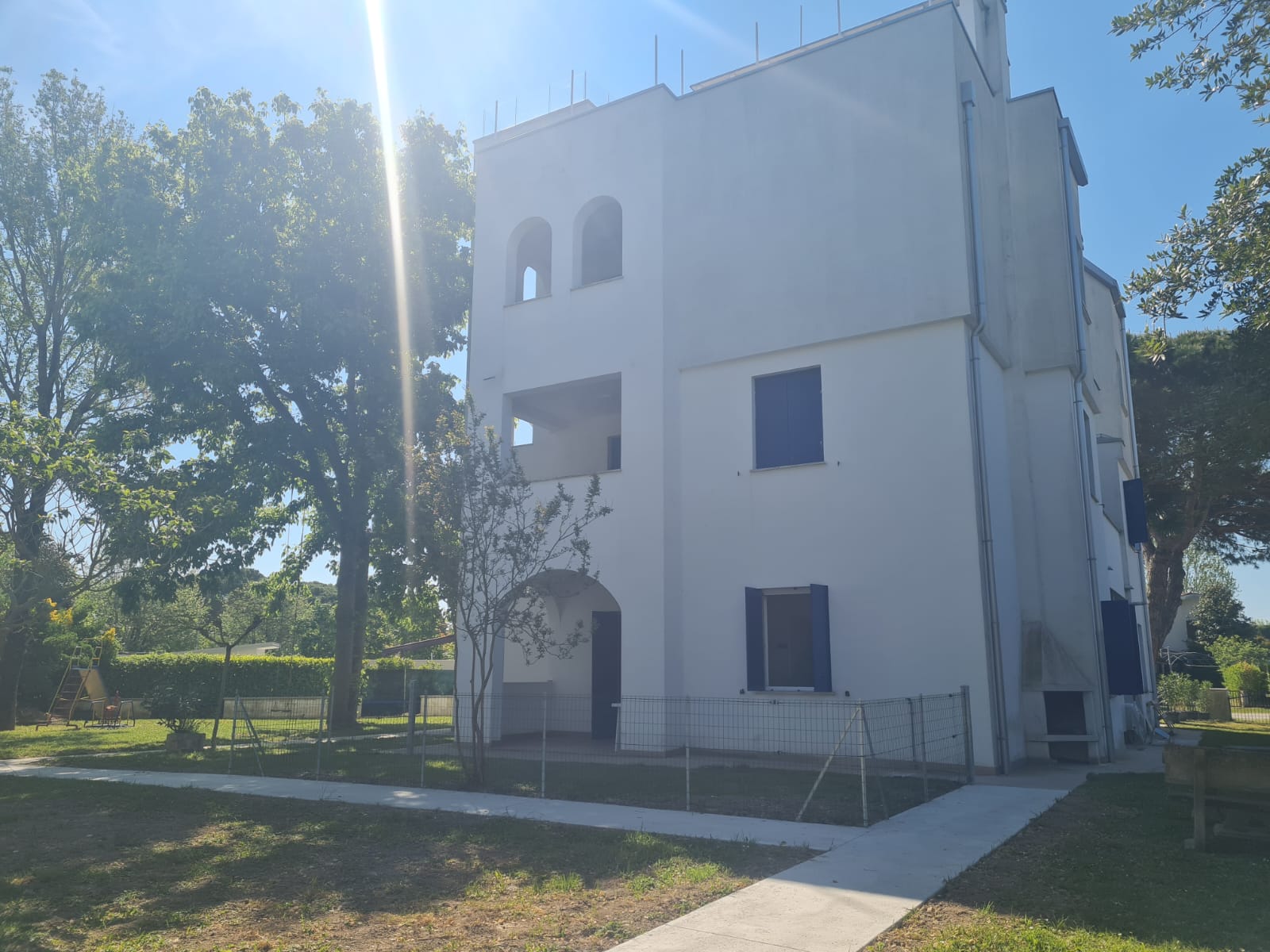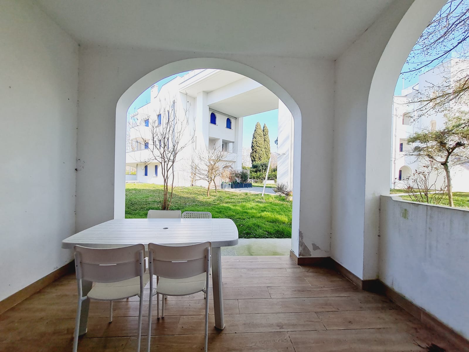 Condominio Duna Blu, recente costruzione (2017) contesto residenziale caratterizzato da case con giardini e tranquillità, suggestiva piscina-solarium sopraelevata fatta nel 2019, ampio verde comune dove rilassarsi e far giocare i bambini: Appartamento Creta B2 piano terra, composto da: soggiorno con angolo cottura disbrigo, due camere doppie, bagno completo con finestra, bagno di servizio con doccia, portico, giardino recintato (che sarà fatto a breve) Arredato, con pale elettriche per raffrescamento.